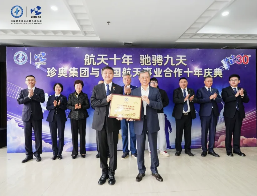 自2016年首次成为中国航天事业合作伙伴以来,珍奥集团始终以航天精神为引领,在核苷酸健康领域持续深耕,将“航天级品质”贯穿于产品研发、生产与服务的全链条。十年间,双方在健康保障、科普宣传、文化融合等方面开展了广泛而深入的合作,珍奥也凭借扎实的科研实力与严格的质量体系,赢得了航天系统的持续信任与认可。