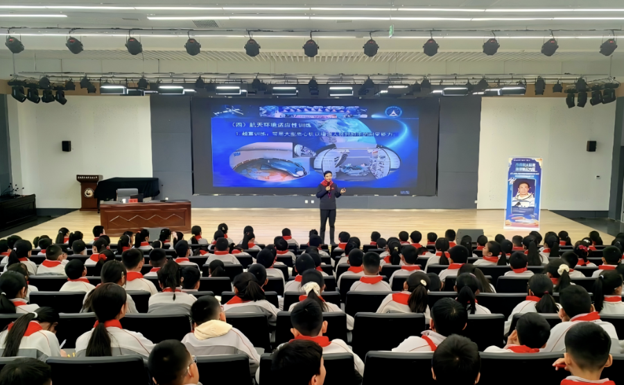 “同学们,你们知道成为一名航天员要经历多少道考验吗?”3月25日,在宝鸡高新第八小学的讲座现场,陈全大校以《航天员选拔与训练》为题,用生动的语言和珍贵的影像资料,向孩子们揭开了航天员训练与太空生活的神秘面纱。