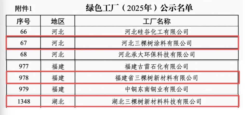 加快推动全面绿色转型,以碳达峰碳中和为牵引,协同推进降碳、减污、扩绿、增长,增强绿色发展动能。在“双碳”目标引领下,绿色转型已成为产业升级的核心命题。将低碳理念深度融入生产全流程,正成为衡量企业未来竞争力的关键标尺。3月18日,中华人民共和国工业和信息化部公布2025年度绿色制造名单,三棵树旗下河北三棵树涂料有限公司、福建省三棵树新材料有限公司、湖北三棵树新材料科技有限公司三大生产基地凭借可持续发展实践,成功获得国家级“绿色工厂”的殊荣。